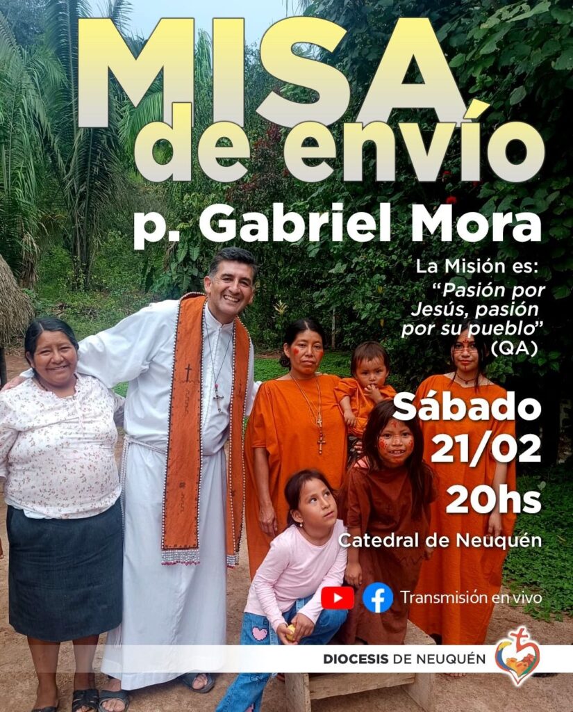 Este sábado 21 de febrero, a las 20hs, en la Catedral María Auxiliadora, se celebrará la Misa de envío del padre Gabriel Mora a la misión en la Amazonía peruana, como parte del proyecto misionero «Iglesia argentina, Amazonía es tu misión» que la Conferencia Episcopal Argentina y las Obras Misionales Pontificias pusieron en marcha en abril del 2022 con el objetivo de asumir como Iglesia argentina la atención pastoral y misionera de una porción del Vicariato Apostólico de Perú.